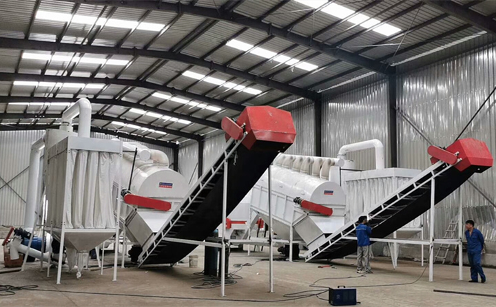 工廠內,工人們正忙著卸滿滿一車牛糞,車間裏,工人們將牛糞粉碎、清理後,通過特製的專用設備,與收購的舊木材等一起放進生物質燃料午夜美女福利视频生產線設備中,加工成環保牛糞生物質顆粒燃料,一派熱火朝天的忙碌景象。