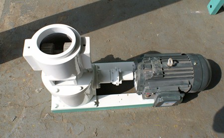 采用模板、壓輥采用優質合金鋼經特殊處理,飼料機主軸及平模在摩擦力作用下,帶動壓輥自轉,壓輥與模板產生高溫使澱粉熟化,蛋白質變性凝固,在壓輥擠壓下從模孔中排出,小型飼料機顆粒經甩料盤送出機外,通過調節切刀角度可控製顆粒飼料的長短。